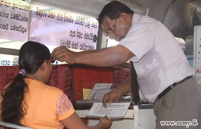 Supported by Mahanuwara Opticals (Pvt) Ltd, the eye surgeon, Dr Nimal Weerakon and his staff examined more than 500 civilians and distributed spectacles, worth about Rs. 281,700/= among the patients with visual impairments free of charge.