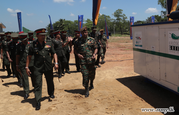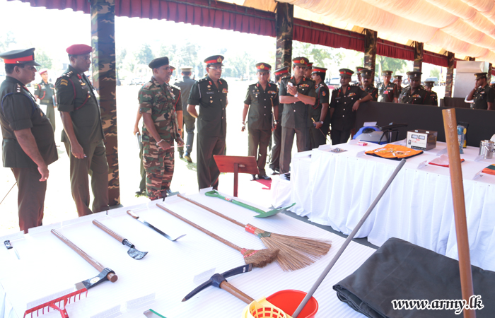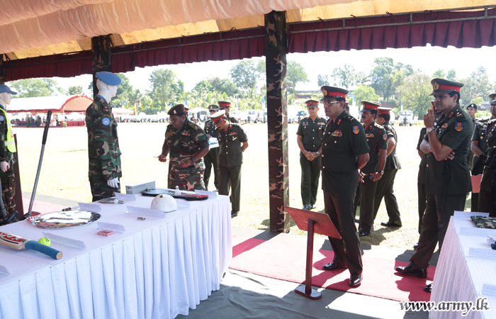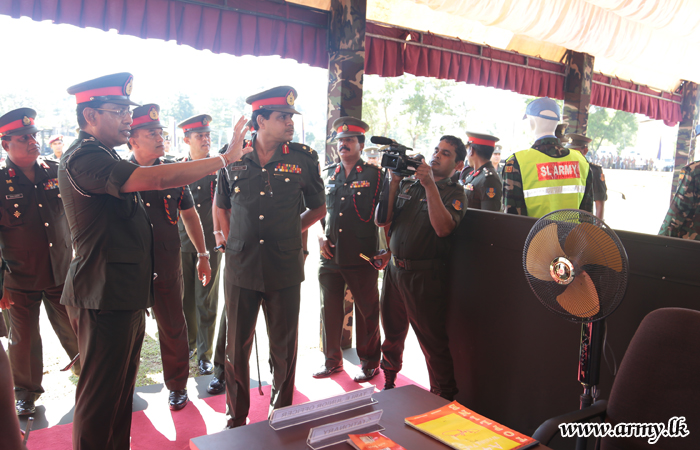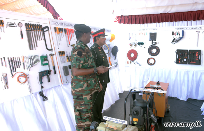 Major General Peiris, on arrival at the venue was received by Major General B. A. Perera, Director General General Staff (DGGS) together with Major General Tissa Jayasooriya, Director General Army Industries (DGAI), Brigadier WRP De Silva, Director Plans, before he was conducted to inspect the equipment a considerable part of which had been manufactured by the Army itself.