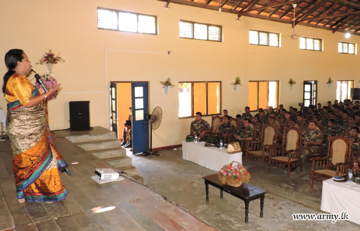 This educative lecture, planned and organized by the 23 Division Headquarters, following a suggestion, mooted by Major General Darshana Hettiarachchi, General Officer Commanding, 23 Division, was delivered by Mrs Rathna Pushpakumari, a Consultant in Human Empowerment.