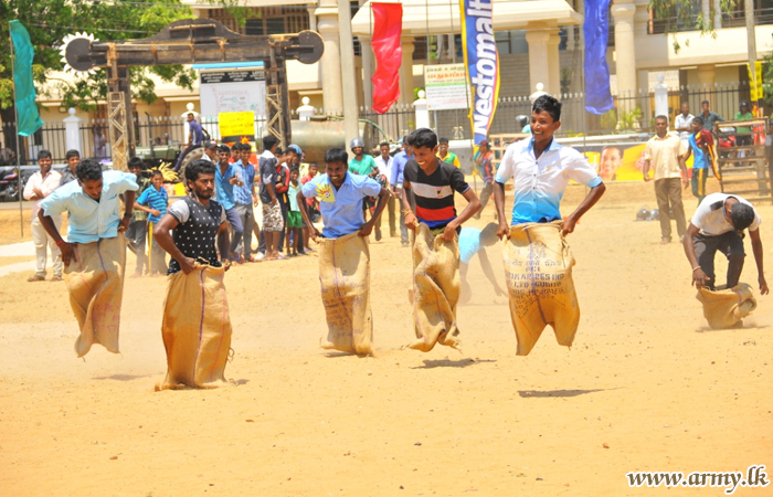 In the meantime, another New Year festival was staged by Mullaittivu -based 64 Division at Oddusudan School Grounds with the participation of all Brigades, Battalions on April 24 under the supervision of Major General S.T.D Liyanage, General Officer Commanding (GOC.