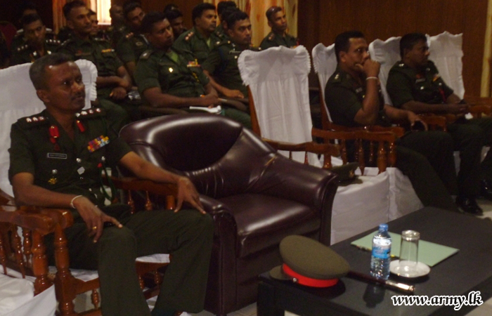 Security Force Headquarters – Mullaittivu (SFHQ-MLT) organized one more session of its Wednesday training programme for officers in Divisions, Forward Maintenance Areas (FMA), Brigades and Units under the guidance of Major General P. U. S Vithanage, Commander, SFHQ-MLT at Headquarters main auditorium on Wednesday (01).