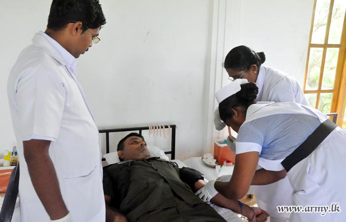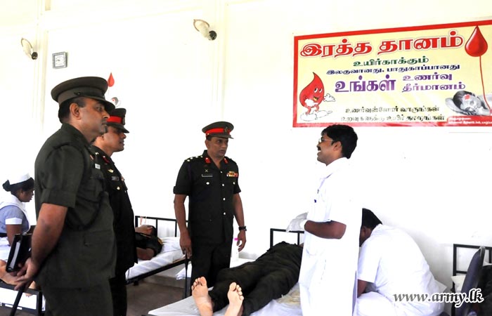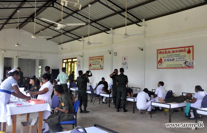 6 Sri Lanka Sinha Regiment (SLSR) troops organized a blood donation campaign under the supervision of Brigadier Anura Sudasinghe, General Officer Commanding (GOC), 57 Division at Harmony Center, Kilinochchi with the collaboration of the Blood Bank, District Hospital Kilinochchi on Tuesday (14).