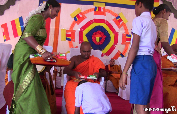 Venerable Pitaduwe Siridhamma thero together with 170 members of the Siri Sadhaham Yathra Foundation at Bellanthara, another 30 Buddhist monks, officers and other ranks also attended the programme.