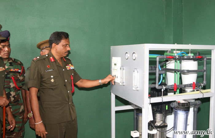 Security Force Headquarters - Kilinochchi (SFHQ-KLN), fulfilling a long-needed vital requirement of its troops, managed to have a mega water purification plant, established in Thirumurukkandi with the active support of the 11 Corps of Engineer Services (CES) and SFHQ-KLN troops.