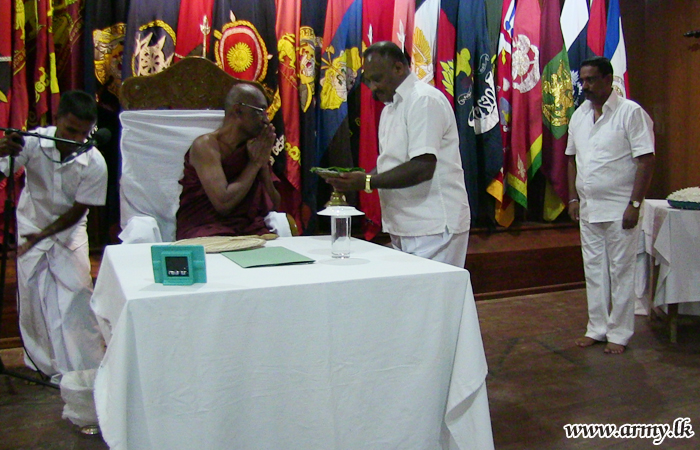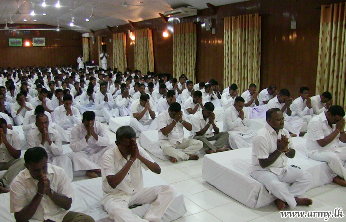 Ven. Ambagamuwe Sanutha Thero, incumbent at Sinhapura Meditation Centre delivered the sermon and invoked blessings on the country, the army and all serving it. Transfer of merits on fallen War Heroes also took place at the same occasion.