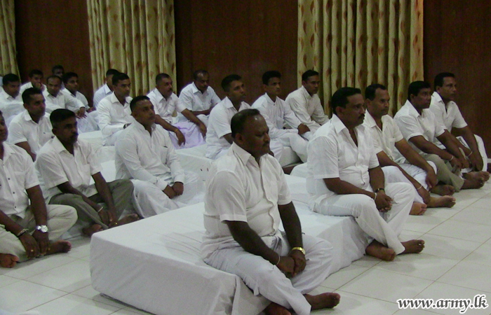 Expecting to promote spiritual advancement and righteous thoughts among members of the Army serving the Security Force Headquarters - Mullaittivu (SFHQ-MLT), the conduct of a Dhamma sermon was organized on Wednesday (6) by the officers and other rankers serving the Forward Maintenance Area. It took place at the SFHQ-MLT auditorium under the guidance of Major General P.U.S Vithanage, Commander, SFHQ-MLT.