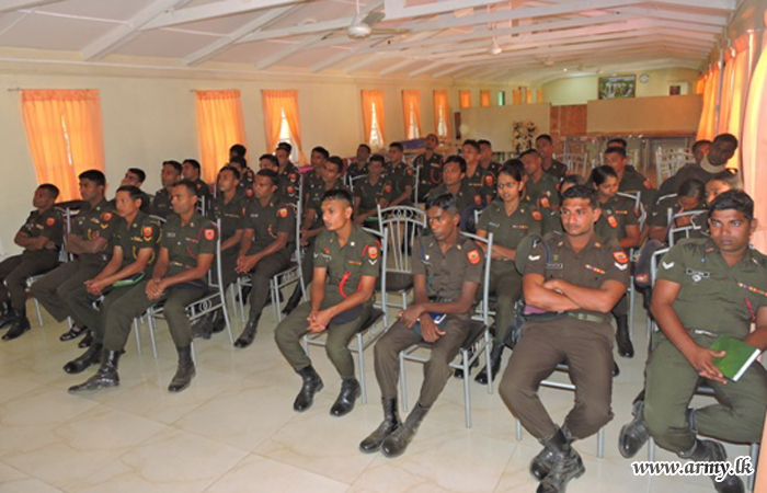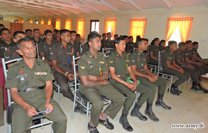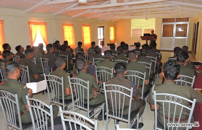 Troops serving the SFHQ- C listened to the lecture at the main conference hall. The lecture was delivered by Warrant Officer 1 D.M.A.P Jayawardana of 2 (V) Sri Lanka Army Medical Corps (SLAMC) who is also serving as a Public Health Inspector (PHI) at Diyatalawa Army Hospital.