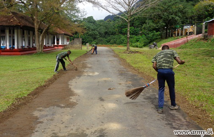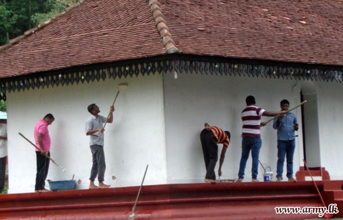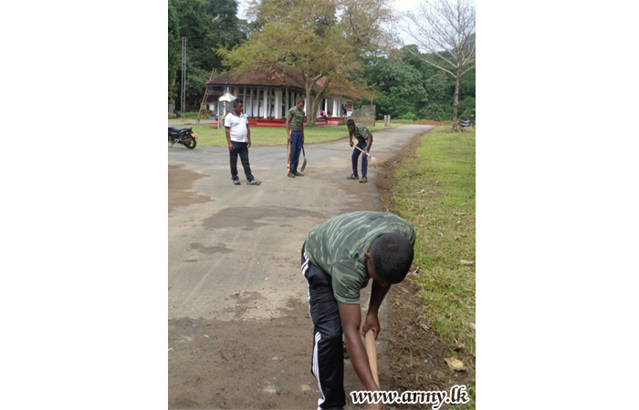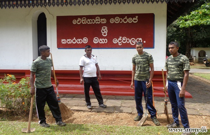 Troops of the 2 (V) Sri Lanka Rifle Corps in the 111 Brigade serving under the Security Force Headquarters – Central assisted Sri Katharagama Devalaya, Morape, Kothmale at Gampola to organize its annual Perahera ceremony and the cleaning of the Kovil premises on Friday (30).