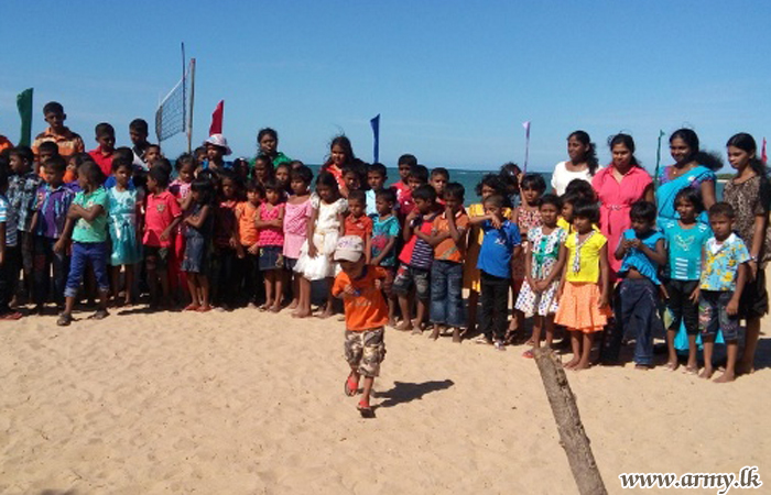 To coincide with the International Children’s Day (October 1), the 23 Division Headquarters on the instructions of Major General Darshana Hettiarachchi, General Officer Commanding, 23 Division, took those students to soothing Sallathivu beachfront in the eastern coast and made them to enjoy the day amid music provided by the Army Calypso team.
