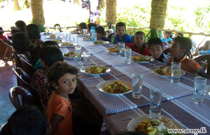 80 children learning at Ruhunuketha Primary School in Welikanda had a day of entertainment following arrangements, made by the 23 Division Headquarters at Punani.