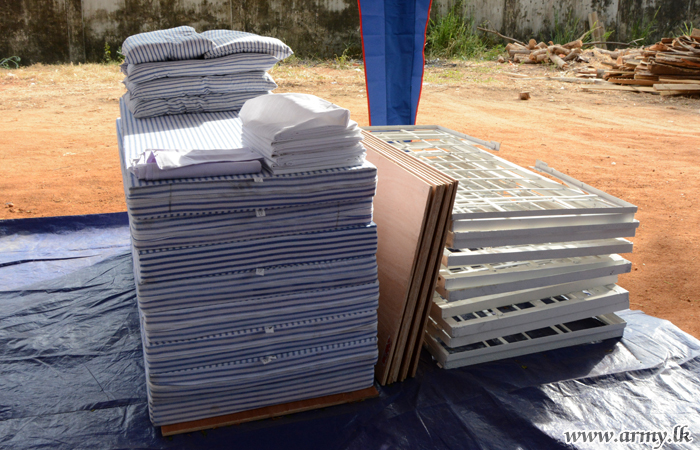 Commander, Security Forces - Wanni, Major General Boniface Perera and Commanding Officer of 2nd Battalion of Sri Lanka Army Ordnance Corps Lieutenant Colonel Vidura Dissanayake donated those medical equipment, including ten beds to Dr. A.M Hasitha Attanayake.