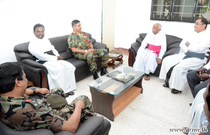 Afterwards, the Commander visited Ven. Ambagaswewa Sangharakkitha Thero, the Chief Incumbent at Matota Raja MahaViharaya, The Chief lncumbent - Murunkan temple and Rev Kingsly Swami Pillai, the acting Bishop of Mannar.