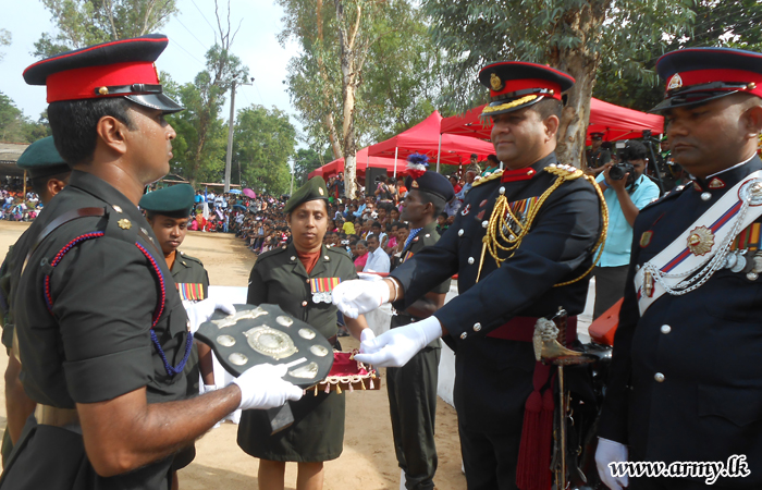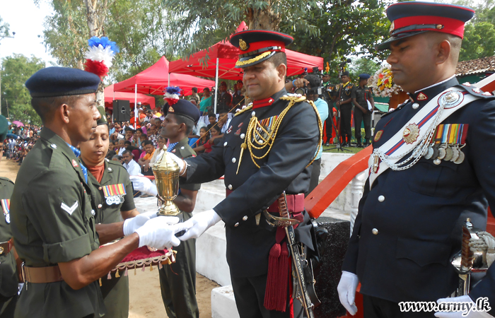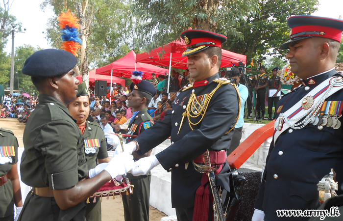Those recruits, composed of 14 Sri Lanka Signal Corps, 65 Sri Lanka Light Infantry, 14 Gajaba Regiment, 123 Military Intelligence Corps, 38 Sri Lanka Rifle Corps and 03 Sri Lanka Army Pioneer Corps, passed out in a formal ceremony that awarded colours in recognition of their talents.