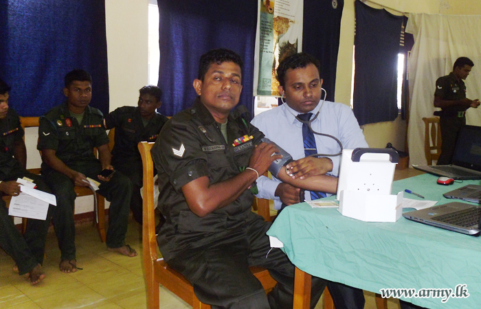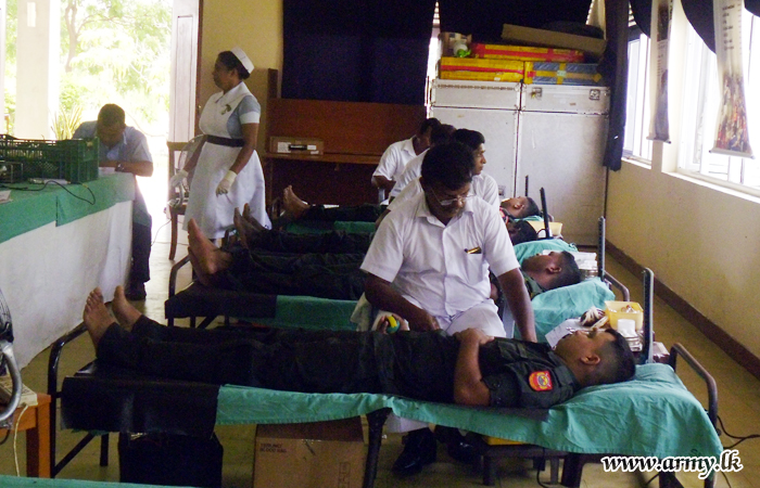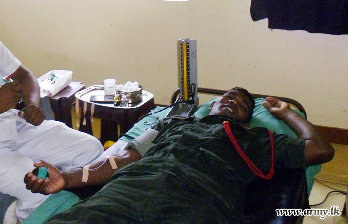 Major General Ralf Nugera, General Officer Commanding, 12 Division, responding to a request made by Mr Udeni Kumara, Programme Coordinator of the ‘Tzu Chi’ Foundation enabled the troops to donate their blood for use of patients at Hambantota District hospital.