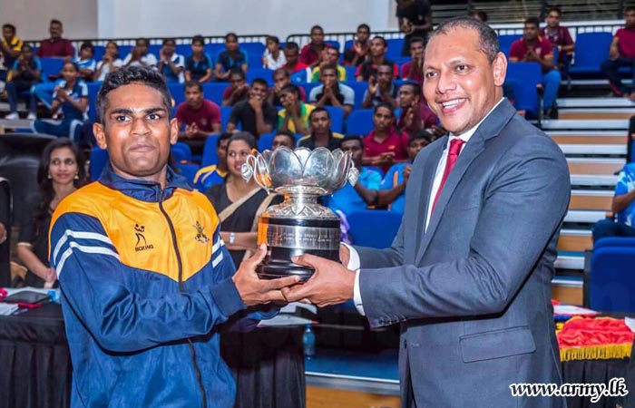 The National Tournament, competed by 186 boxers from island-wide clubs had been organized by the Sri Lanka Association of Amateur Boxers. Male boxers of the Army during the tournament won the Championship in five weight categories out of ten categories and secured seven Bronze medals in runners-up slots.