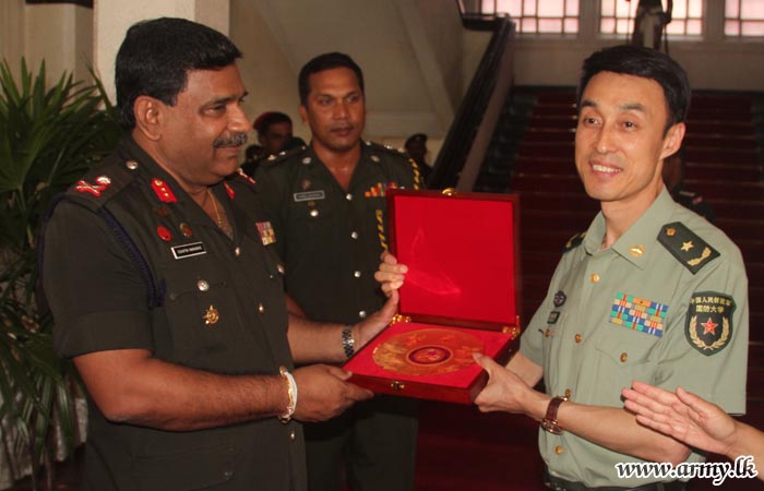 A students delegation of National Defence University in China, headed by Major General Wu Shuli and five Major Generals and forty senior Colonels visited the Security Force Headquarters - West (SFHQ - West) on Friday (9) as part of their itinerary in Sri Lanka.