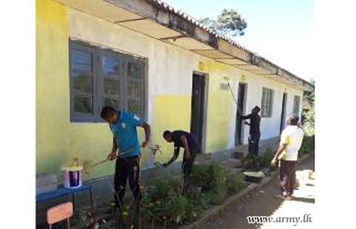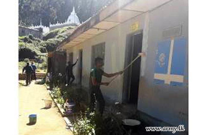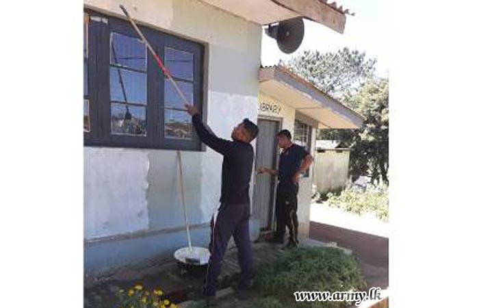 3 (Volunteer) Sri Lanka Sinha Regiment (SLSR) troops serving the 112 Brigade under the Security Force Headquarters-Central (SFHQ-C) renovated the buildings at Mahinda Maha Vidyalaya, Nuwara Eliya on Tuesday (13) in response to a request.