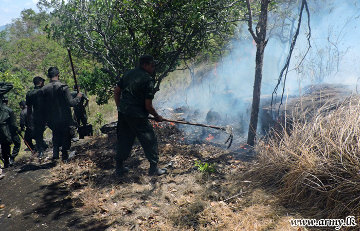 Troops of the 3 (V) Sri Lanka Sinha Regiment (SLSR) serving the 11 Division of the Security Force Headquarters - Central (SFHQ- C) in another instance of its public service, took immediate steps to bring a fast spreading bushfire under control in the general area of Talawakele Holy Rest in the Nuwara Eliya District on Wednesday (14).