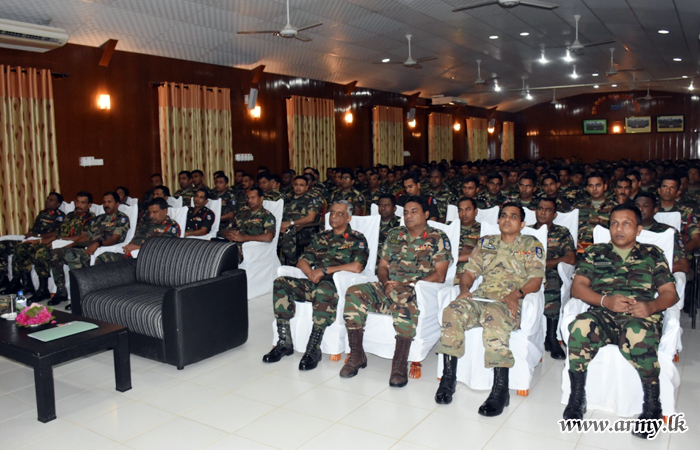 50 officers and 220 other ranks serving the 59 Division, 50 officers and 200 other ranks serving the 64 Division and 50 officers and 300 other ranks of 68 Division listened to the lecturers, delivered by Major General Dampath Fernando, Commander, Security Forces - Mullaittivu at the respective places.