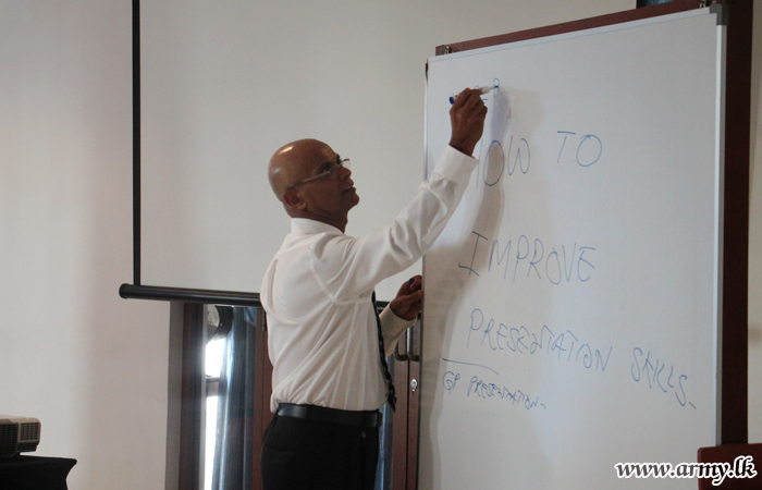 The knowledge on contemporary ‘Presentation Skills and Time Management’ was disseminated through this workshop, and it was conducted by Lieutenant Colonel (Retired) Wasantha Kumara on the invitation of the Security Force Headquarters -Jaffna.