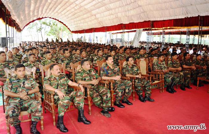 Major General Dharshana Hettiarrachchci, Commander, SF- E, Major General Dammika Pananwala, GOC, 23 Division, Major General Manoj Mudannayake, Commander, FMA (E), Officers and over a thousand other ranks were among those who joined there to listen to him.
