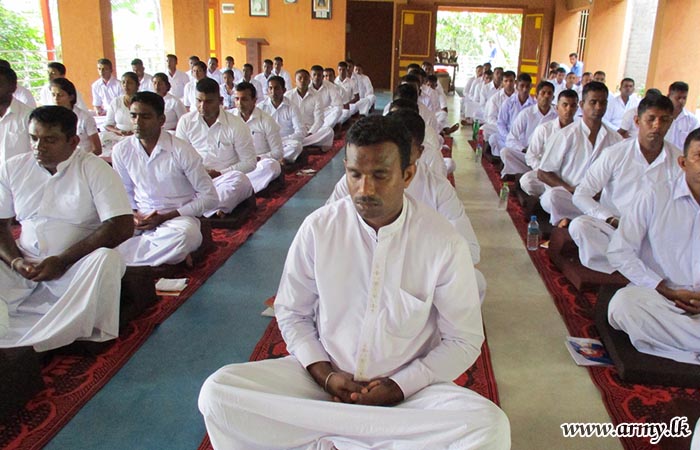 A programme that has been devised by the Directorate of Psychological Operations at the Army Headquarters to elevate the spiritual standards as well as mental peace among hardworking service officers and other ranks, had one more meditation session at Kanduboda, Siyane International Vipassana Bhavana Centre on Saturday (4).