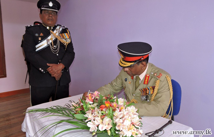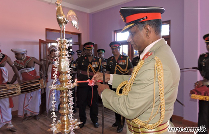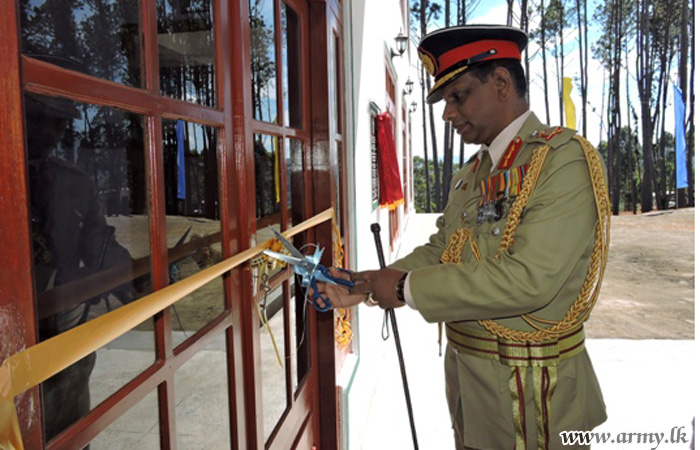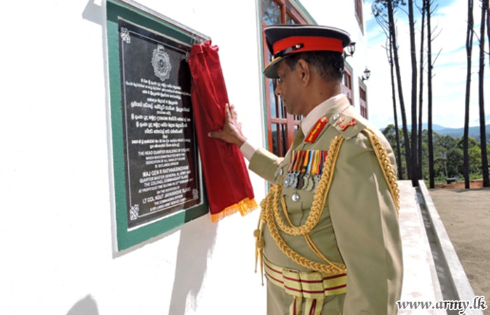 Thereafter, Major General R Ratnasingham was invited to unveil a symbolic plaque and warm the new office complex of the 8 SLASC at Diyatalawa by cutting a ribbon.