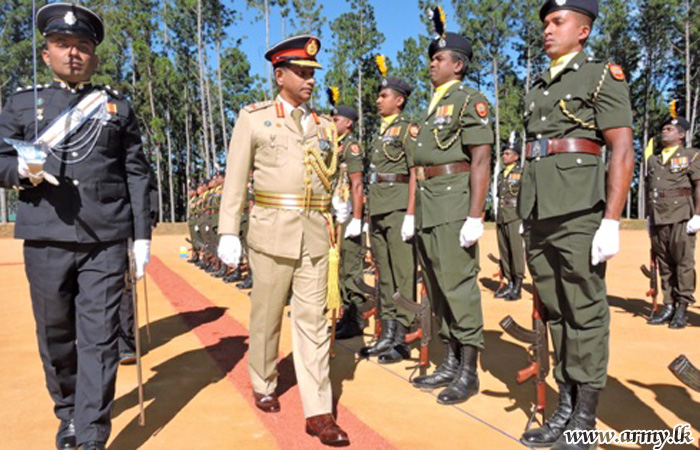 A Guard Turnout of the 8 SLASC troops in keeping with military traditions, saluted the visiting Colonel of the Regiment at the entrance to the Headquarters premises and was later conducted to the saluting dais to receive the Guard of Honour presented on his behalf.