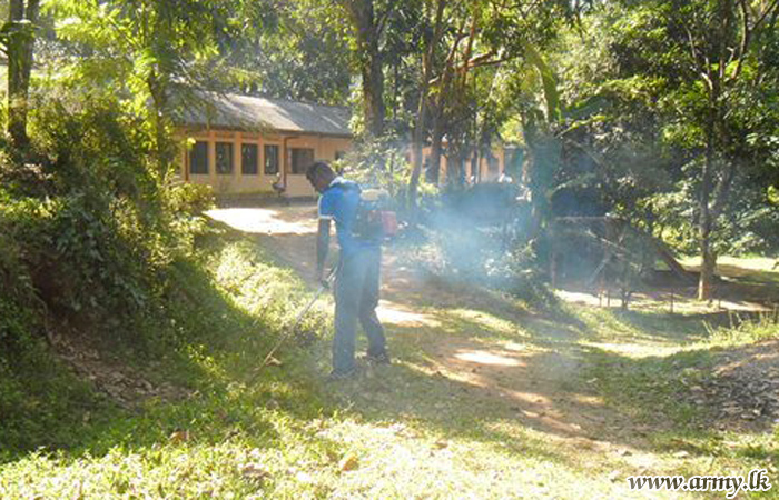 Troop of the 2 (V) Sri Lanka Sinha Regiment (SLSR) of the 111 Brigade serving under the 11 Division of the Security Force Headquarters - Central (SFHQ-C) on Tuesday (7) carried out a cleaning project in the Ananda Vidyalaya premises at Uda Peradeniya.