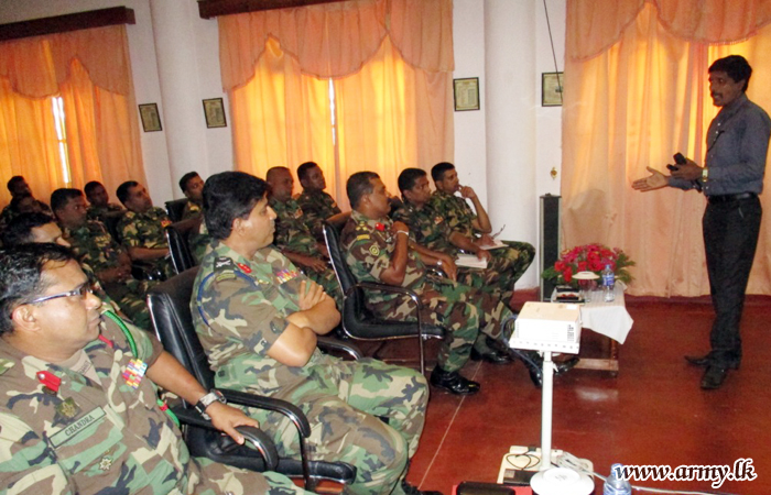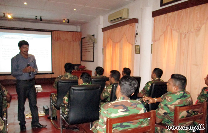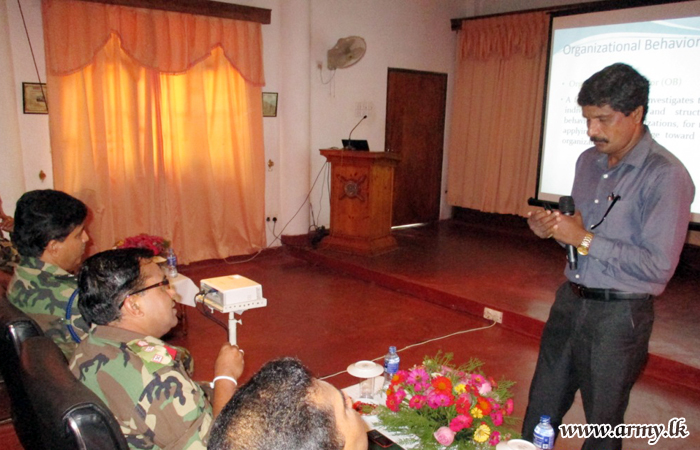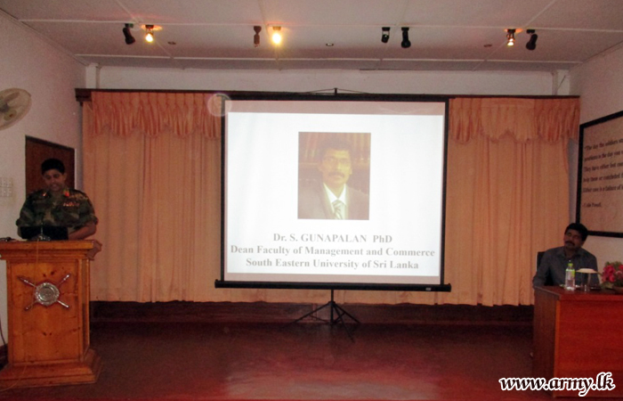 Dr S. Guanapalan, Dean, Faculty of Management and Commerce of the South Eastern University delivered lectures on the timely important topic with the aim of educating officers on different aspects of an organization. Major General H.W.S.D.B Pananwala, General Officer Commanding, 23 Division invited the university don to conduct the sessions.