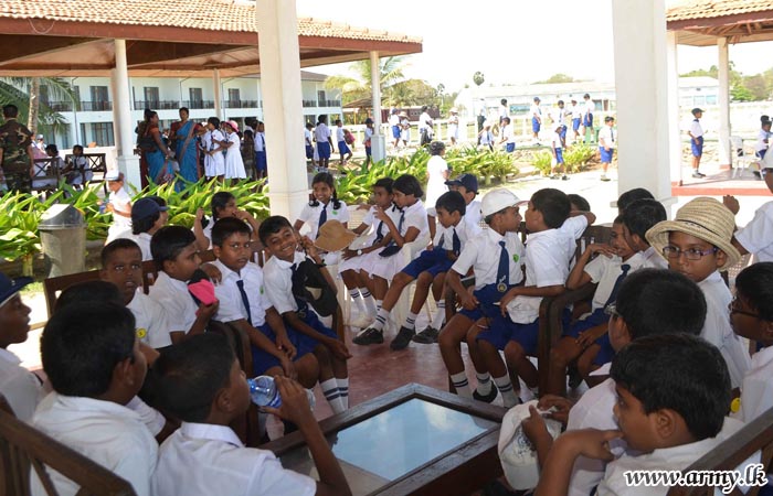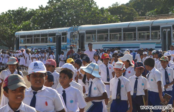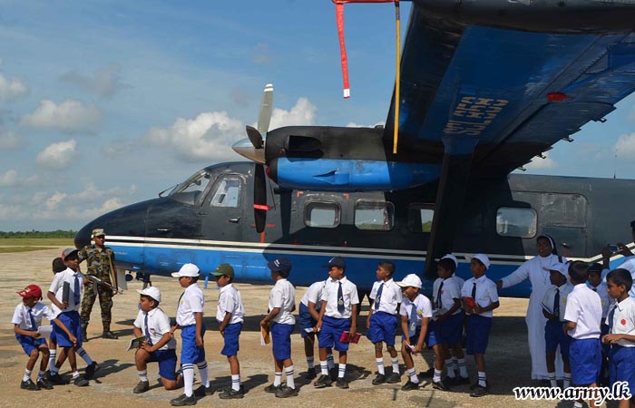 Security Force Headquarters-Jaffna (SFHQ-J) troops facilitated a group of school children at St. Bosco Vidyalaya, Jaffna to visit the Palaly airport on Monday (13).