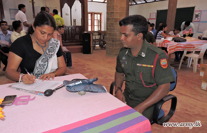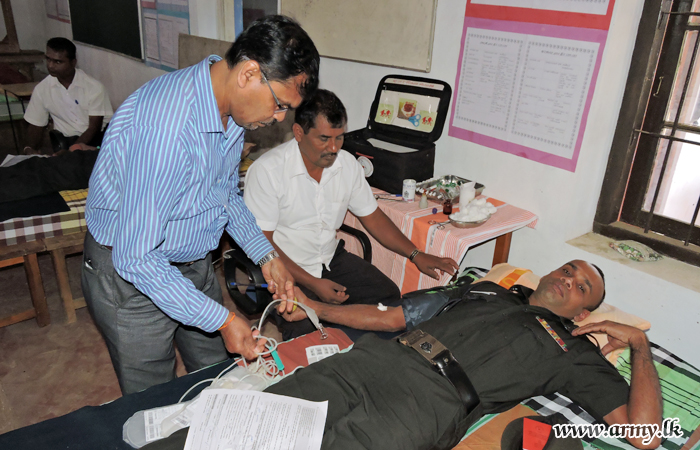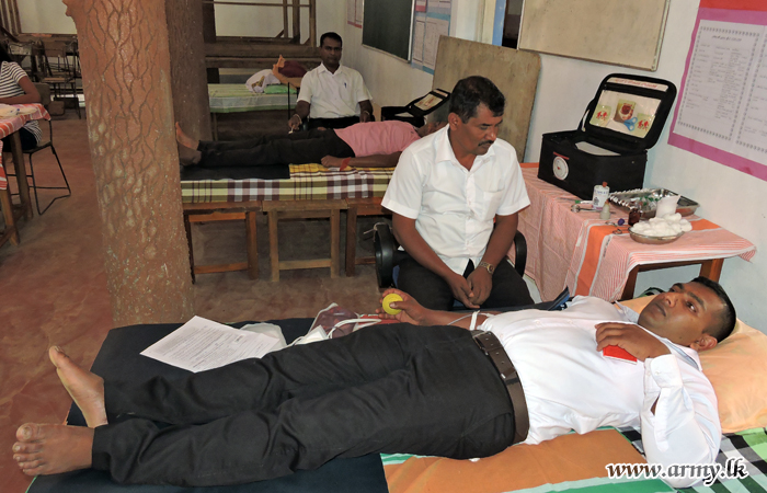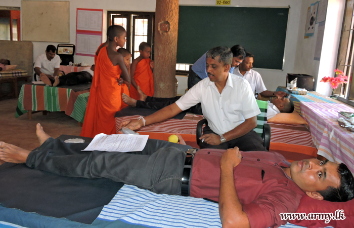 Army troops supported a blood donation campaign organized by the English Bee Academy and its students on the guidelines given by the Commander, Security Forces-Central (SF-C) at Kadurugoda historical temple, Diyatalawa on Wednesday (15).