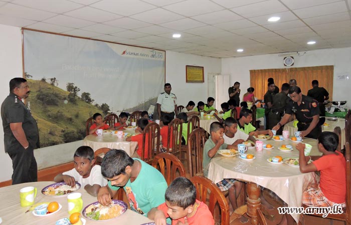 Troops organized a charity programme, mainly on Friday (3), and offered lunch to the children at Siri Sagabo centre for children in Ambewela, Bandarawela.