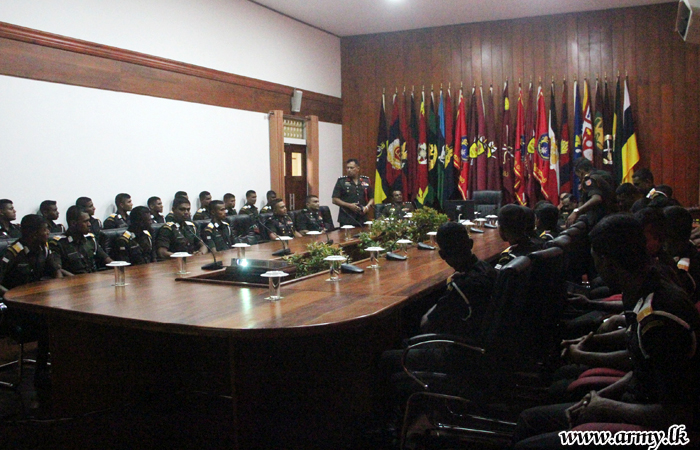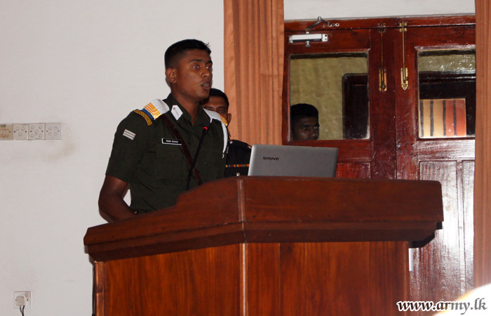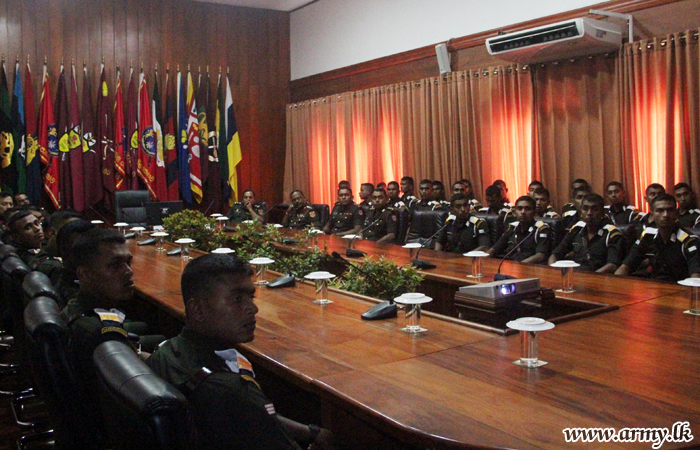 A presentation conducted by Major R.M.L.A Rathnayake SFHQ-West on the directions of Major General Sudantha Ranasinghe, Commander, Security Forces - West provided the visiting Cadets with an overall picture of the roles of the SFHQ-West after they were welcomed to the premises.
