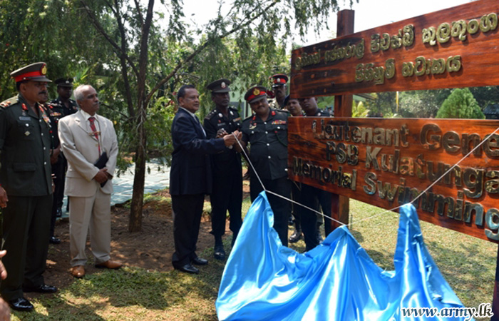 Afterwards, the Gemunu Regiment Swimming Pool was re-opened after repairs dedicating it to "Lieutenant General PSB Kulatunga Memorial Swimming Pool" to honour late Lieutenant General P.S.B Kulathunga. In addition to that, an All Rank tea was organized at the newly-opened swimming pool complex.