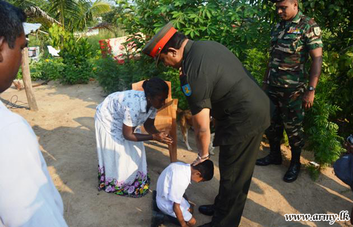On the day of the opening, Major General Darshana Hettiarachchi, Commander, Security Forces - East (SF-E) laid the cornerstone for construction of another new house in the same area for a needy family. The same charity organization will provide funds for the raw materials. SFHQ-E troops are to erect this new house, too.