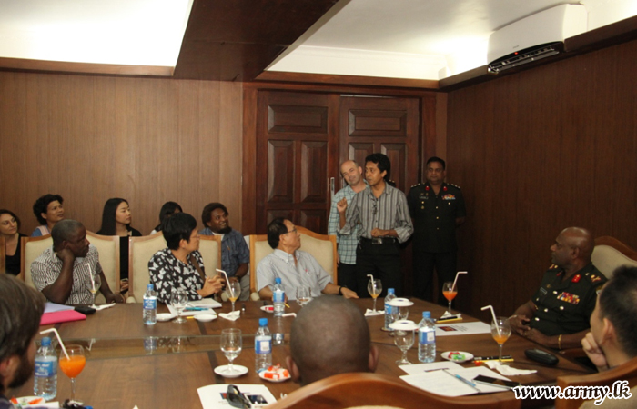 Major General Mahesh Senanayaka, Commander, Security Forces - Jaffna (SF-J) who extended a warm welcome to the visiting delegation presented a detailed account about Jaffna’s geography, demography, economy and civil administration and updated them on the present situation in the peninsula.