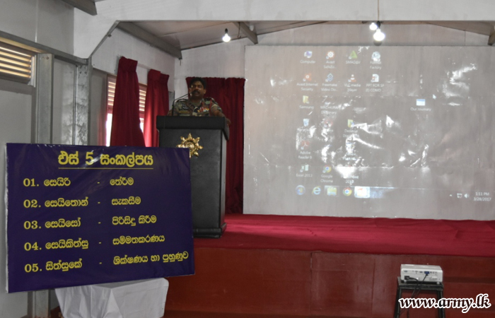 Officers and Other Rankers serving all Brigades and Units of the 24 Division at Malwatte, Ampara on Tuesday (28) listened to a lecture on ‘5 S’ Concept.