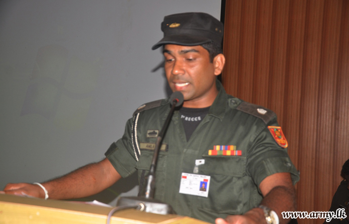 Lieutenant Colonel B.D Sashika Perera, Commanding Officer, Army Vocational Training School at Saliyawewa - Kalaoya and Mr. Chaminda Wijedasa, Training Officer, Anuradhapura Vocational Training Centre, delivered those awareness lectures and stimulated the gathering for receipt of such training during the arrangement at the SFHQ-KLN auditorium.