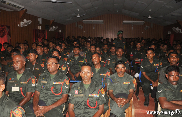 The importance of receiving a vocational training, prior to retirement was highlighted during a special awareness programme, organized by the Security Force Headquarters - Kilinochchi (SFHQ-KLN) on Tuesday (4) before a gathering of more than 400 Army personnel.