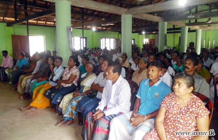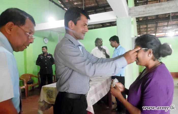 Following coordination done by the CAVT Commandant, Brigadier H.E.M.R.B.T Hathnagoda and Dr Nimal Weerakoon of Kandy Opticals (Pvt) Ltd, together with a team of medical staff, a mobile eye clinic at the above Community Hall was held where a total of 282 pairs of spectacles were distributed among under-privileged people suffering from vision impairments.