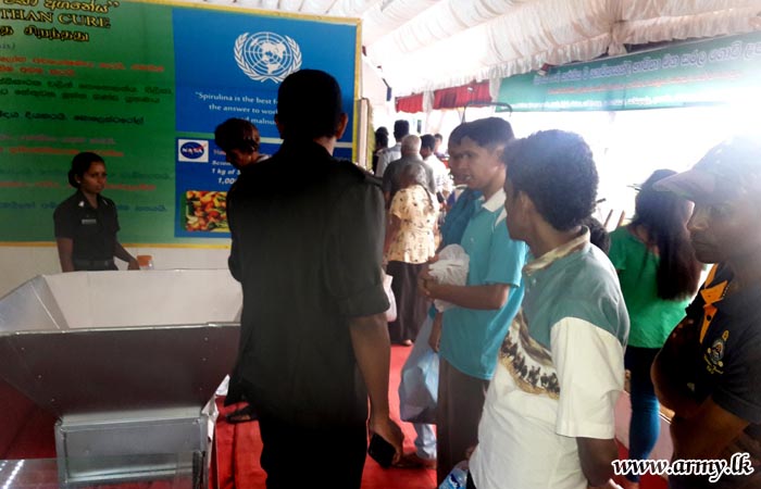 The Army stall, themed on ‘A country free from toxicants’, ‘Prevention from Chronic Kidney Diseases (CKD)’, ‘Righteous Country’, ‘Carbonic Fertilizer Production’, ‘Control of Polythene use’, ‘Promotion of domestic crops’, ‘Hybrid production of seeds’, etc educated the visitors by way of screening informative literature , presentations, etc.