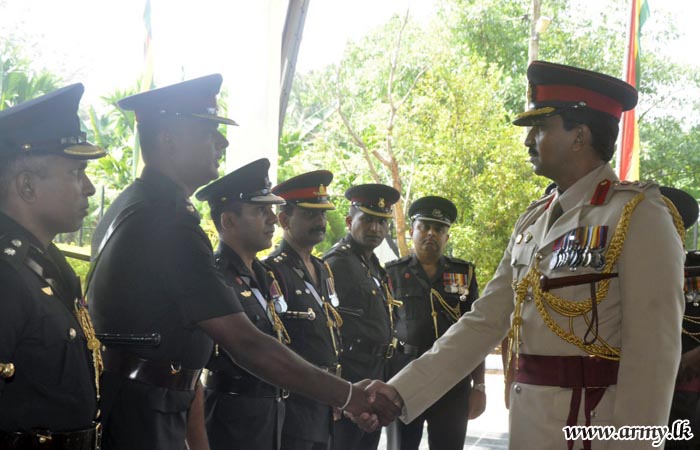 On arrival at the Headquarters, the newly-appointed GOC received a Guard Turnout and reviewed a Guard of Honour, presented by 1 Sri Lanka Sinha Regiment troops in the parade ground.
