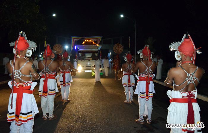 Colonel of the Regiment, GW Major General P.U.S Vithanage was present to receive the sacred object. Before it was brought here in procession, the statue was consecrated for a month at the Deraniyagala God Sumana Saman's shrine.