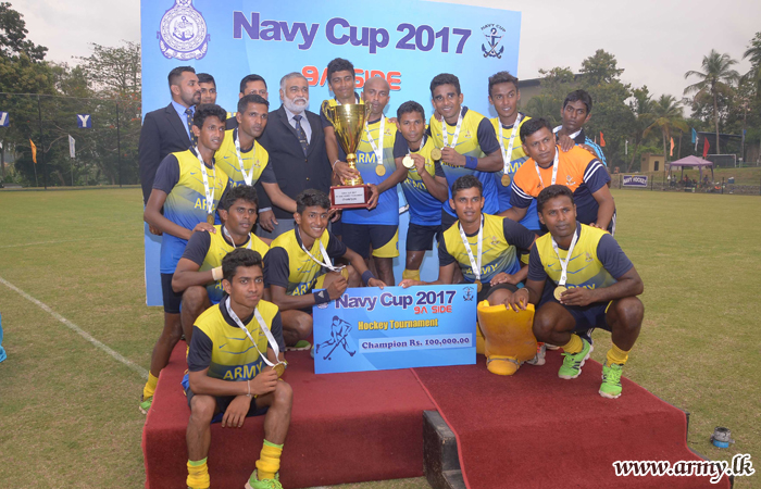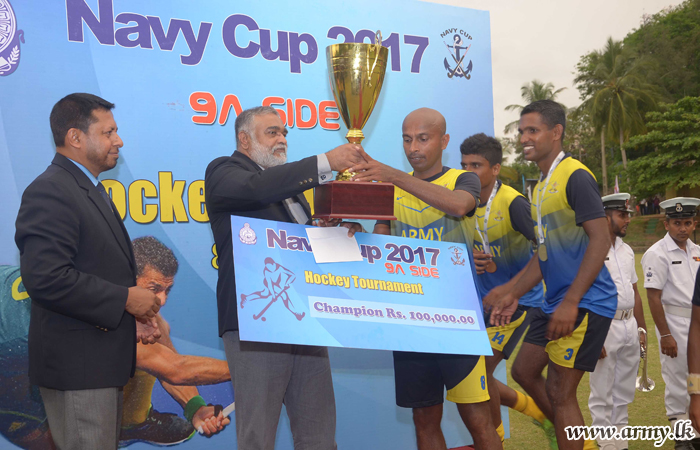 Sri Lanka Army Hockey players Sunday (9) evening beat their Navy counterparts during the finals in the ‘Navy Cup 2017’, Hockey Tournament, held at the Hockey Turf in Welisara Navy Camp premises and carried away the trophy.