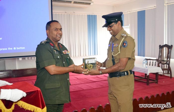 At the request of the Colonel of the Regiment, Chief Inspector H.W Keerthi Jayantha, a Training Instructor in the Police In - service Unit at Anuradhapura conducted the special lecture.