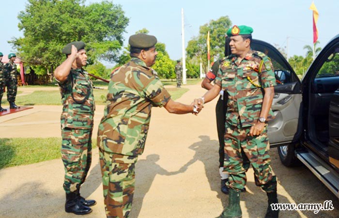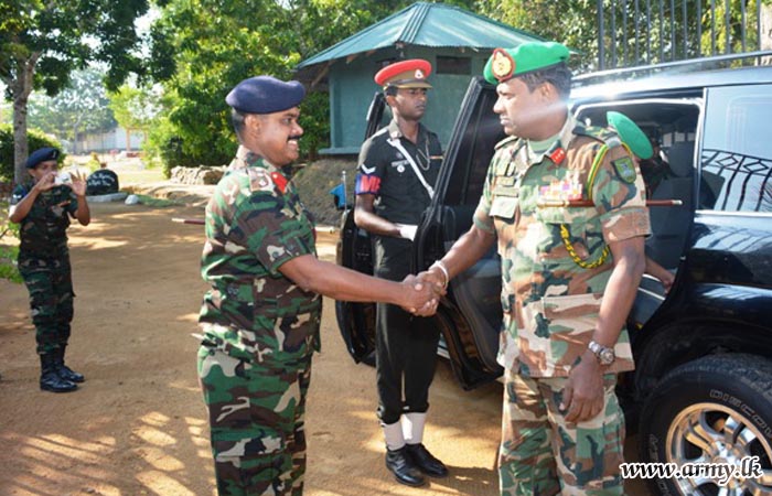 Commander, SF-E first arrived at the 24 Division Headquarters to be received by Brigadier Mahinda Mudalige, General Officer Commanding (GOC), 24 Division before the visiting Commander was greeted to a Guard Turn Out around the main entrance.