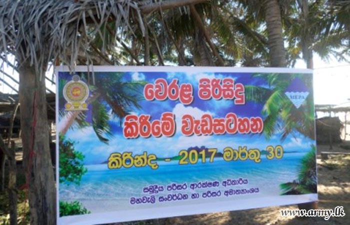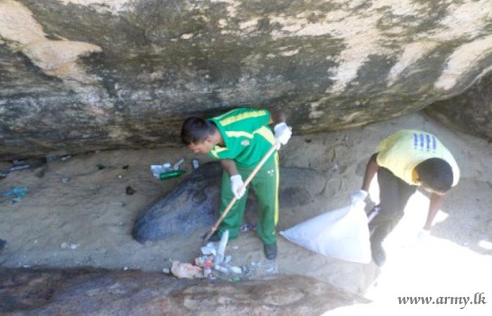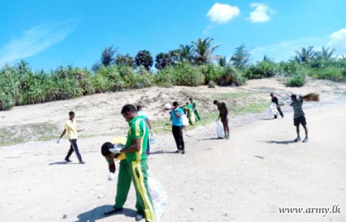 23 Gajaba Regiment troops of the 122 Brigade under the 12 Division Headquarters of the Security Force Headquarters - Central (SFHQ-C), together with officials of the Marine Environment Protection Authority and the Ministry of Mahaweli Development and Environment and civilians, recently carried out a clean-up campaign along the sea beach, close to Kirinda in Tissamaharamaya in the Hambantota District.