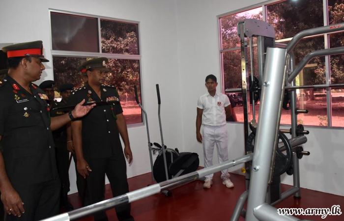 Major General Dampath Fernando unveiled a symbolic plaque and warmed the new gymnasium complex of the SFHQ-MLT at Mullaittivu after cutting a ribbon.