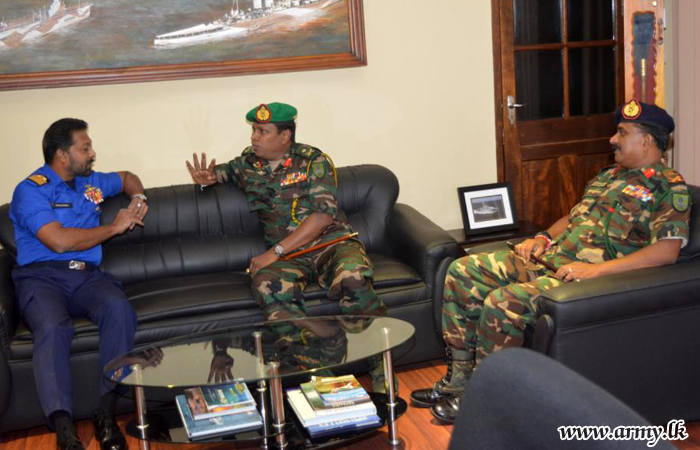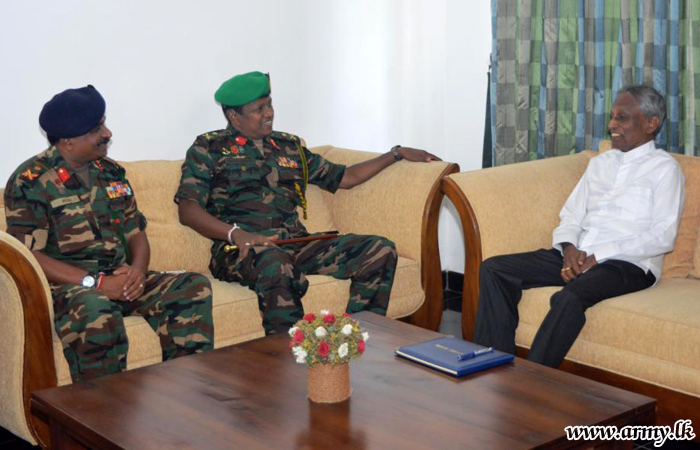 Subsequent to the courtesy call he has had with the Governor, Major General Senadeera called on the Commander, Eastern Naval Area, Rear Admiral Travis Sinnaiah and the Commandant, Sri Lanka Air Force Academy, China Bay, Air Vice Marshal P.D.K.T Jayasinghe.